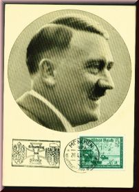ungelaufene Karte mit vorderseitigen Marke DR Mi-Nr.704 und Sonderstempel- Geburtstag des Führers ,München 20.4.40